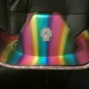 Leather, pearls, and Swarovski Crystal detail. Pins on front are removable.